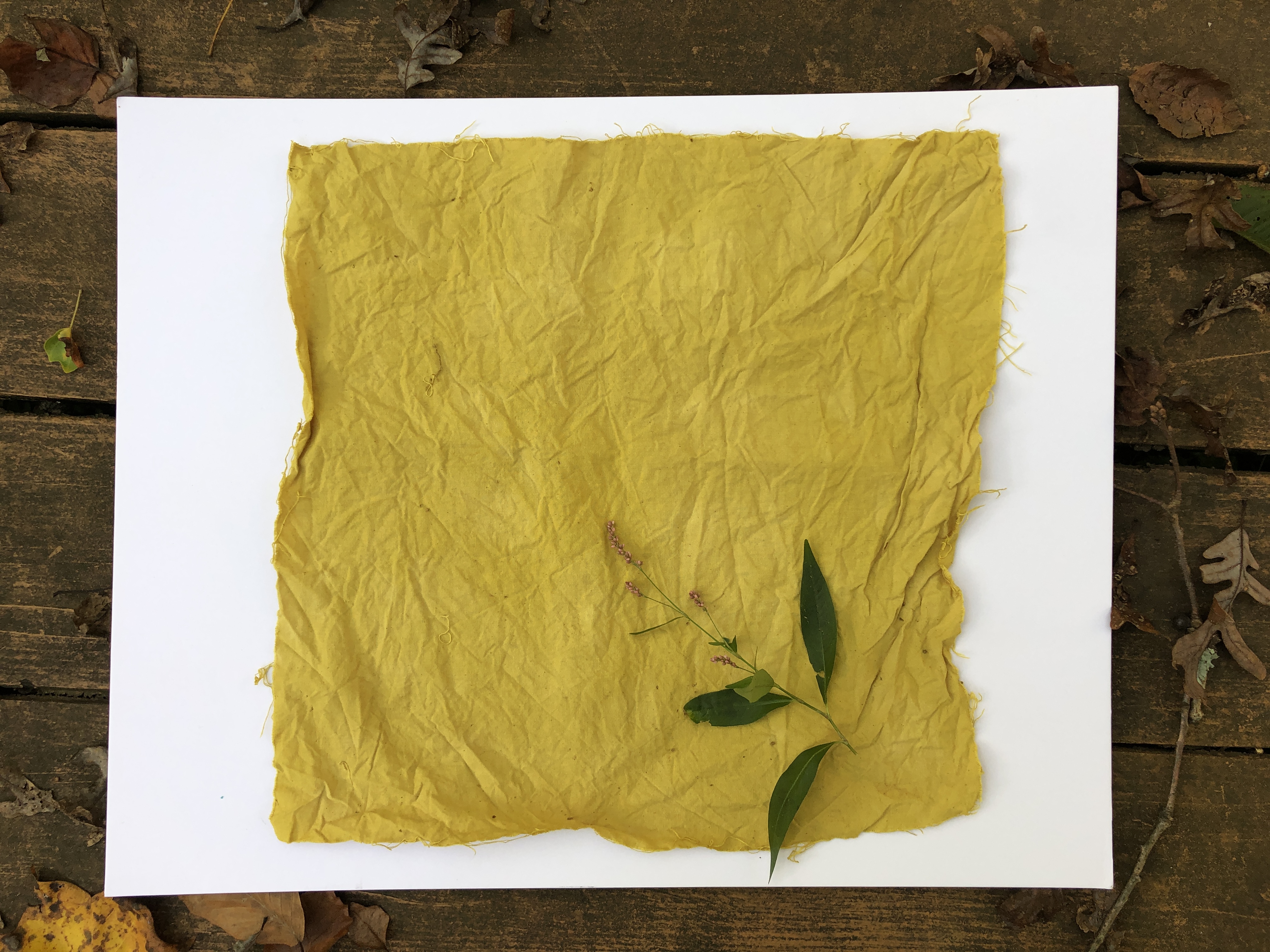 process for each material, and dyed 15 x 15” pieces of muslin fabric for easy